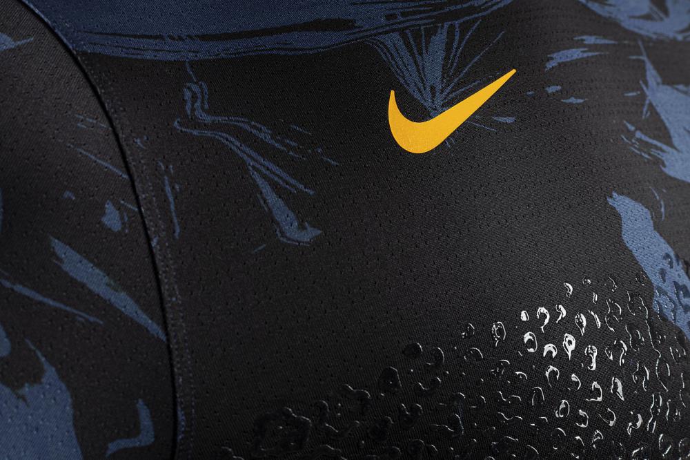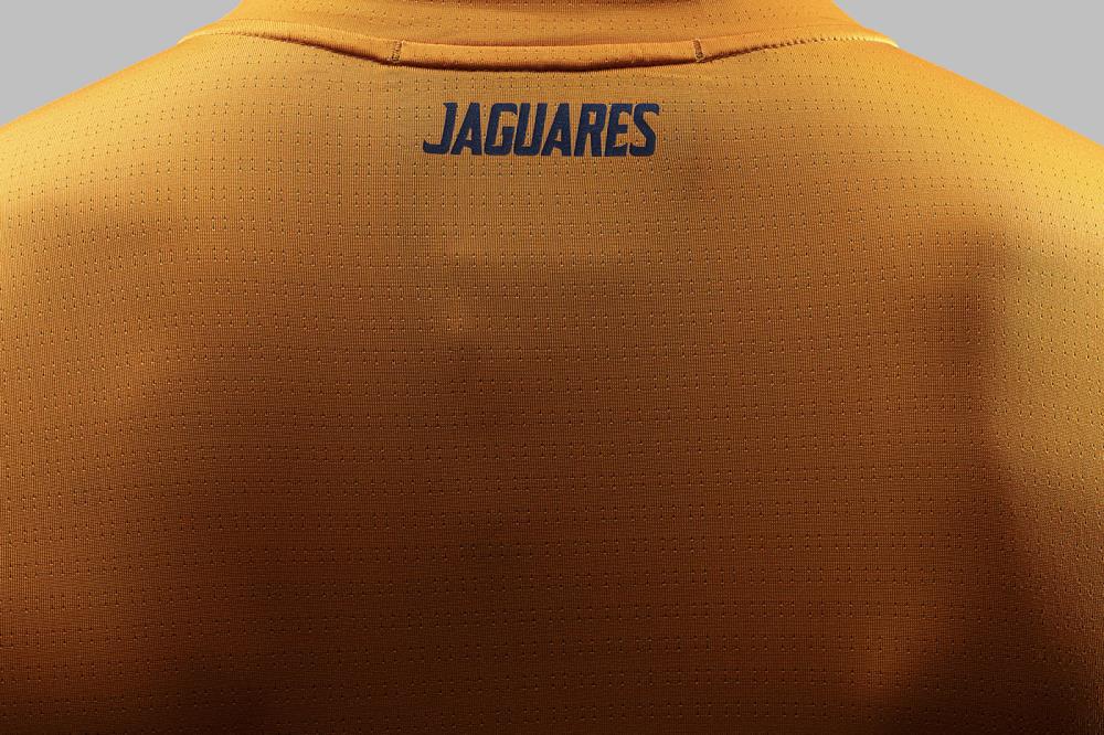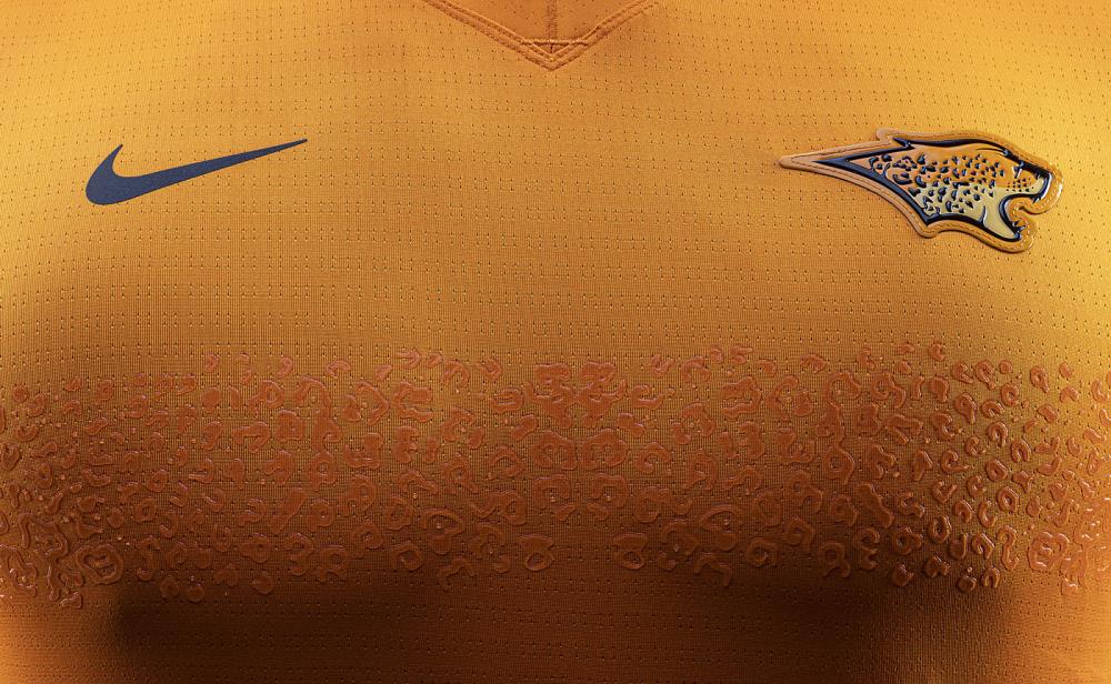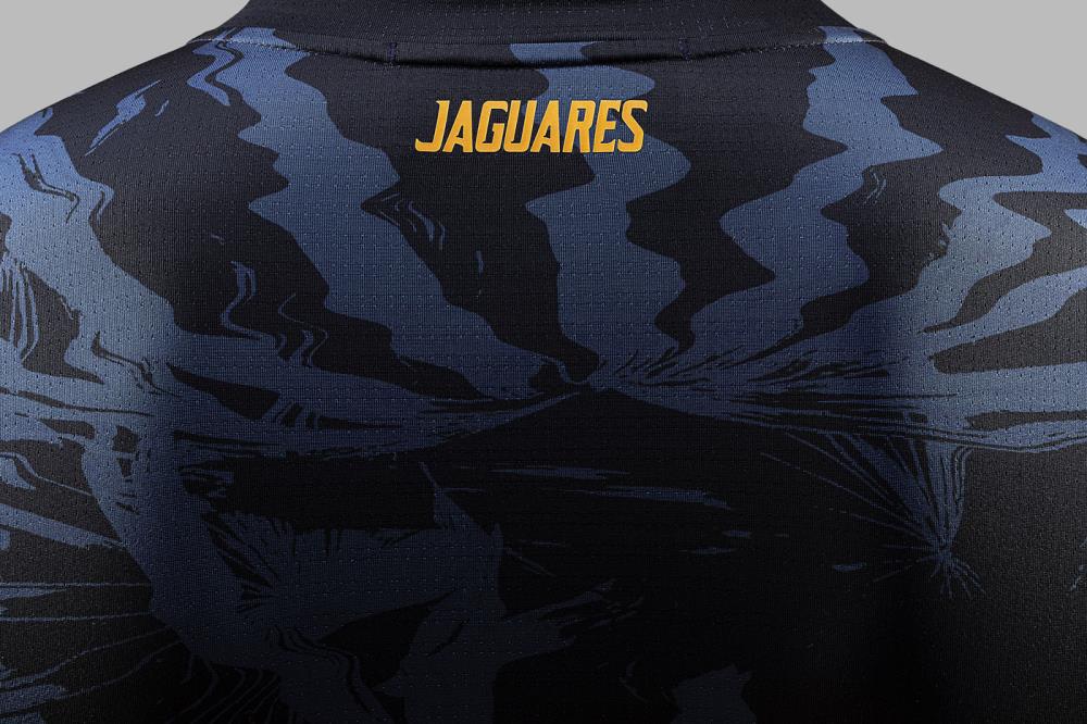 Bajo el lema “Hambre de futuro”, el deseo intenso y la ambición de gloria es lo que empuja a este equipo hacia adelante. El modelo está inspirado en las sombras de la jungla, el lugar desde donde el jaguar acecha y embosca a su presa con una velocidad y precisión letal. Su tonalidad en azul oscuro y negro toman el papel del juego de sombras. Con colores luminosos, la camiseta alternativa se destacará en el campo de los oponentes y simbolizará el momento en el que el jaguar sale por la noche para cazar.