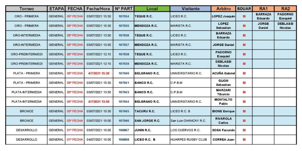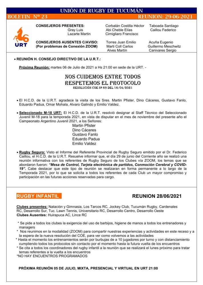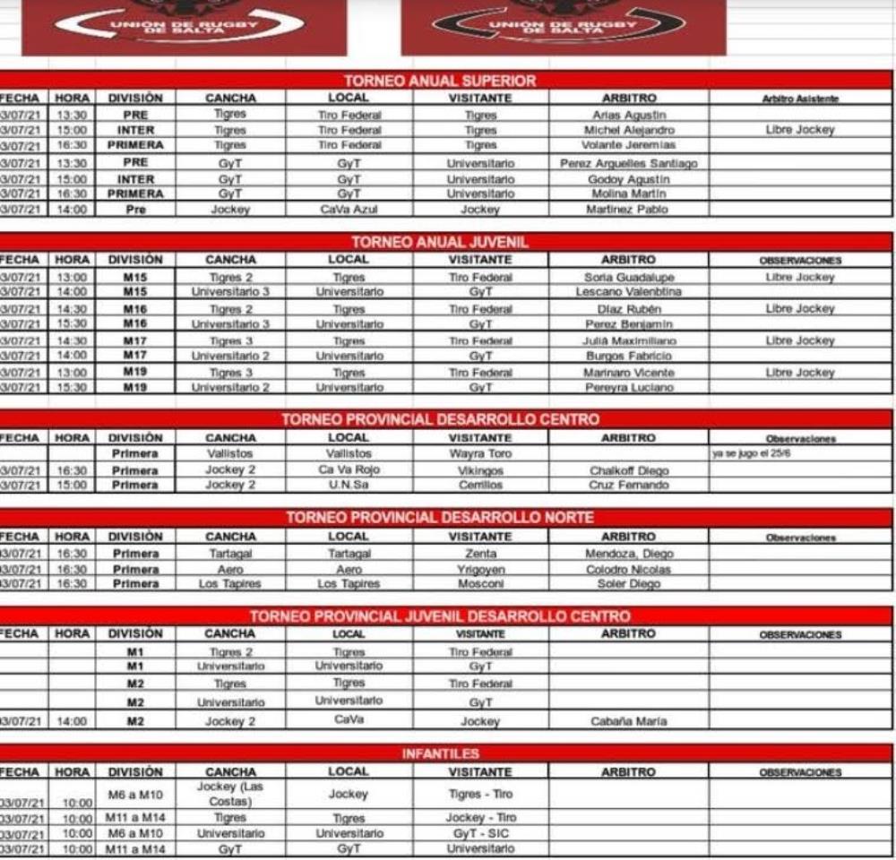 Galería de Imagenes Se dieron a conocer el cronograma de los partidos para este fin de semana y, por el lado de los tucumanos, se resolvió el staff técnico de su selección M18. Salta y Mendoza dieron a conocer el cronograma de los partidos que se disputarán este fin de semana en sus respectivos torneos. Mientras que en Tucumán se dio a lugar la reunión de directivos y emitieron el boletín N°23 en el que resolvieron el staff técnico de su selección M18, Rugby Seguro y Rugby Infantil.Acá te dejamos toda la información de cada unión: Galería de Imagenes