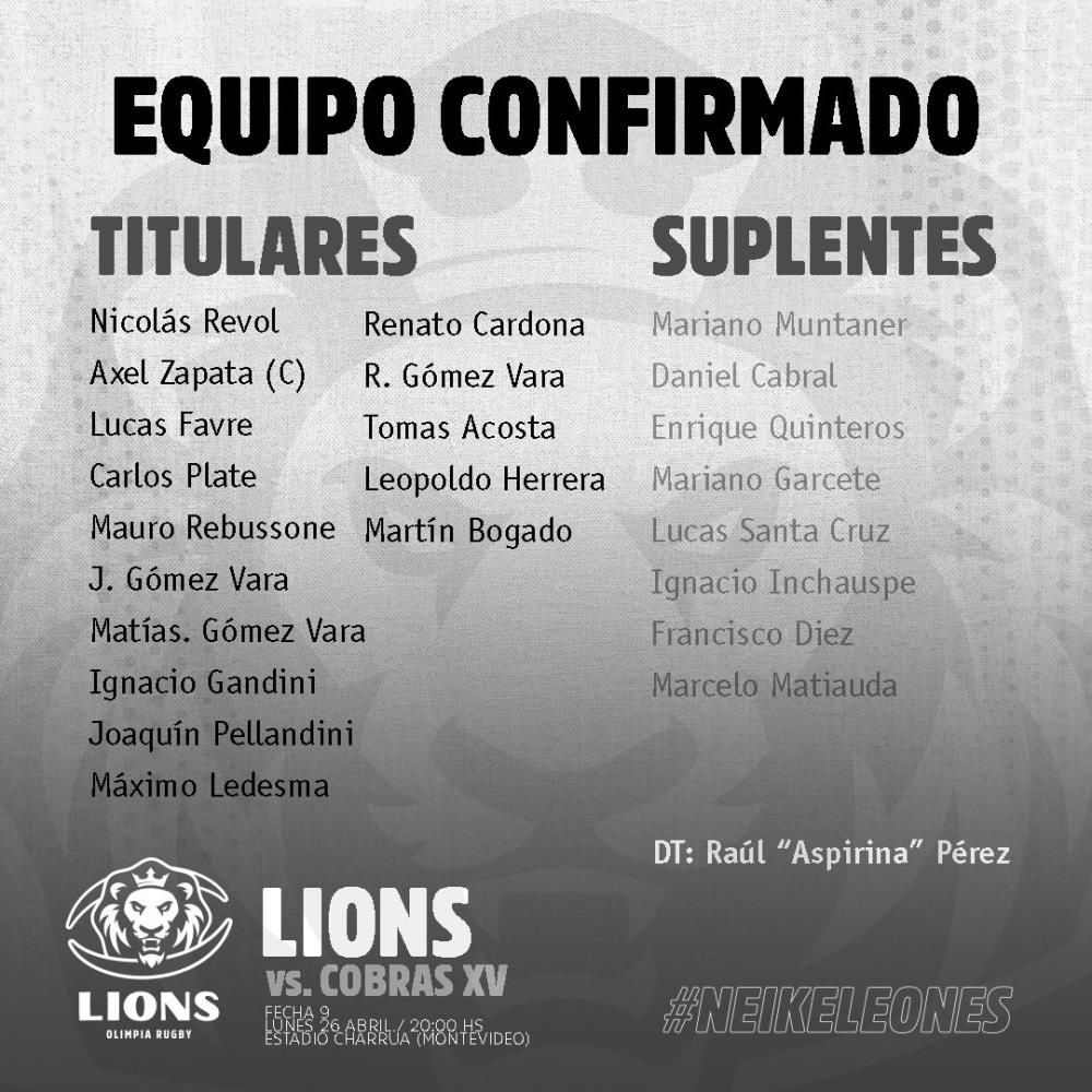 En Olimpia Lions, la idea prece ser balancear el equipo, dar batalla nuevamente y dejar para la segunda mitad una mejor imagen siempre buscando jugar con el mismo estilo, el que lo llevó a las semis. Agresividad y profundidad con los delanteros y tomar todas las opciones de puntos posibles a través del pie de Máximo Ledesma. No estarán Sebastián Urbieta ni Diego Argaña en el centro de la cancha. Allí estará desde el inicio Rodrigo Gómez Vara junto al debut del argentino Tomás Acosta Pimentel.