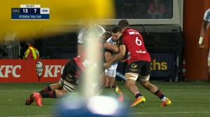 A los 20 minutos, Pablo Matera fue amonestado por reiteración de infracciones en la defensa de Crusaders, sin embargo, esa sanción no fue suficiente para el argentino, ya que dos minutos más tarde de regresar al campo de juego, se fue expulsado al recibir otra tarjeta amarilla.
