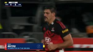 Precisamente a los 32 minutos, Matera tackleó alto al apertura de Chiefs, Bryn Gatland, y vio la segunda tarjeta amarilla, lo que significó la expulsión del argentino, que ya no pudo regresar al campo de juego.
