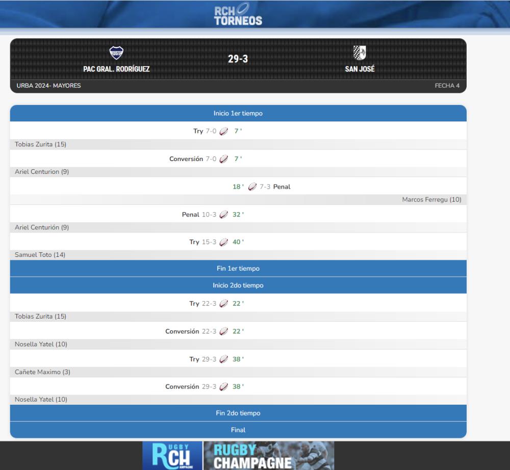 Porteño de General Rodríguez venció al escolta San José por 29 a 3 y lo bajó de la punta. De esa forma se ubica en el cuarto puesto y sigue invicto con un partido menos jugado. Las figuras del partido fueron el ala Santiago Moreno y el fullback Tobías Zurita.