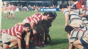 El viaje a Europa y la experiencia de enfrentar a los mejores: “En 2002 me fui a Italia al rugby profesional en el Marchiol Silea. Me llevó la empresa de Diego Domínguez, viajé un miércoles y el sábado debuté contra el Narbonne de Francia, donde enfrenté a Scelzo, Ledesma y Martínez, un pilar izquierdo francés muy bueno, y también al “Chalo” Longo. Después seguí mi carrera en L’Aquila Rugby, donde jugué todas las copas europeas. Después del Mundial de 2003 enfrenté al Newcastle de Wilkinson, a Brive, Castres, Edimburg, un montón de equipos de renombre. La particularidad que tuve en L’Aquila fue que me dirigió Jacques Fouroux (que lamentablemente falleció entrenándonos). Tuve una gran relación con él, admiraba el scrum de Los Pumas de los ‘80 y me llevaba siempre a los torneos de golf que compartía con Laurent Rodriguez, Daniel Dubroca y Eric Champ, unos monstruos para mí”.