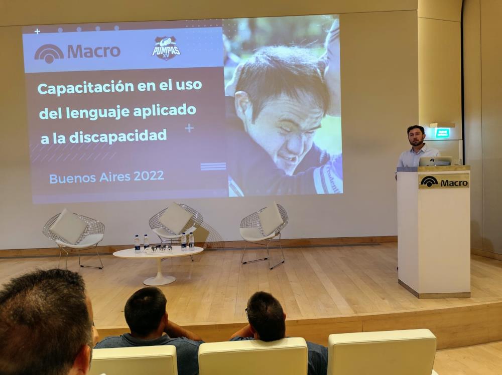 La capacitación se brindó en el Auditorio Torre Macro, ubicado en Avenida Eduardo Madero al 1800 en Buenos Aires, fue moderada por Gastón Fernández Grecco y expuso la Lic en Terapia Ocupacional y parte del equipo de Pumpas XV de inclusión laboral, Silvina Alonso contó con la presencia de una delegación de periodistas de APeFoRA, la Asociación que nuclea a los Periodistas y Fotógrafos de Rugby de la República Argentina compuesta por su Presidente Jorge Ciccodicola, y algunos miembros de la CD Andrés Zucal, Pabló Vallés, Martina Dargains y Marcelo Mariosa.