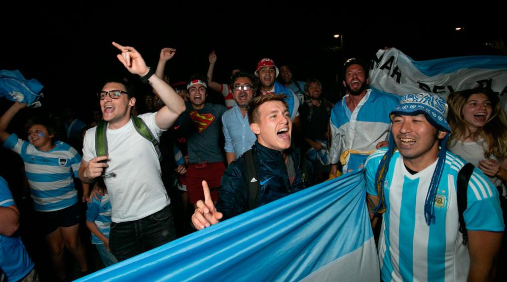 Galería de Imagenes Galería de Videos En la previa del decisivo duelo que afrontarán Los Pumas mañana a partir de las 5 am de nuestro país ante Inglaterra, los hinchas argentinos se hicieron presentes en la puerta del hotel del seleccionado argentino, alentaron al equipo y cantaron junto con algunos jugadores. A continuación, compartimos algunas imágenes del banderazo realizado hoy para apoyar al seleccionado argentina en la previa del duelo ante Inglaterra. Fotógrafo: Gentileza Prensa UAR. Fuente: Jorge Ciccodicola y Hernando De Cillia (enviados especiales a Japón). Galería de Imagenes Galería de Videos