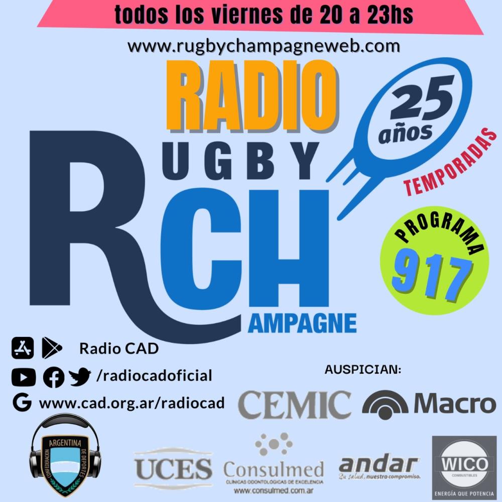 Galería de Imagenes Se emitió como todos los viernes en Radio CAD y tuvimos grandes invitados. LOS INVITADOS FUERON: LEONARDO GRAVANO, OTRO DE LOS ENTRENADORES DEL STAFF DEL SEVEN DE BRONCE EN LOS JJOO // LUCAS PIÑA Y SU ANÁLISIS A FONDO DE CUBA // MENSAJE DE ESTEBAN FAIMBERG PRESIDENTE DE LA UNION SANTAFESINA DE RUGBY QUE CUMPLIÓ 66 AÑOS // TOMÁS TANTUCCI DE SAN CIRANO Y ANDRÉS WADE DE HURLING ANTICIPARON EL DUELO DE ESTA FECHA // BERISSO Y FLORESTA CON SUS ENTRENADORES ANTICIPARON EL CHOQUE DE ESTE FIN DE SEMANA CON LA PALABRA DE FERNANDO TORRIJOS DE BERISSO Y NICOLAS REALI DE FLORESTA // COMO SIEMPRE OSCAR JIMENEZ DESDE AUSTRALIA CON TODAS LAS NOVEDADES.TODO ESO Y MUCHO MÁS EN ESTE PROGRAMA 917 DE RCH. 25 AÑOS DE PERIODISMO INDEPENDIENTE Y VERDADERA PASIÓN POR EL RUGBY. ACÁ TE DEJAMOS EL PROGRAMA COMPLETO Galería de Imagenes