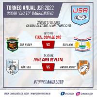 Santiago Rugby y Old Lions RC disputarán el título de la Copa de Oro del Torneo Anual Oscar “Chato” Barrionuevo 2022 de la Unión Santiagueña de Rugby; mientras que en primer turno, Añatuya RC y Amigos de Fernández RC se verán las caras para dilucidar quien se hace acreedor de la Copa de Plata.