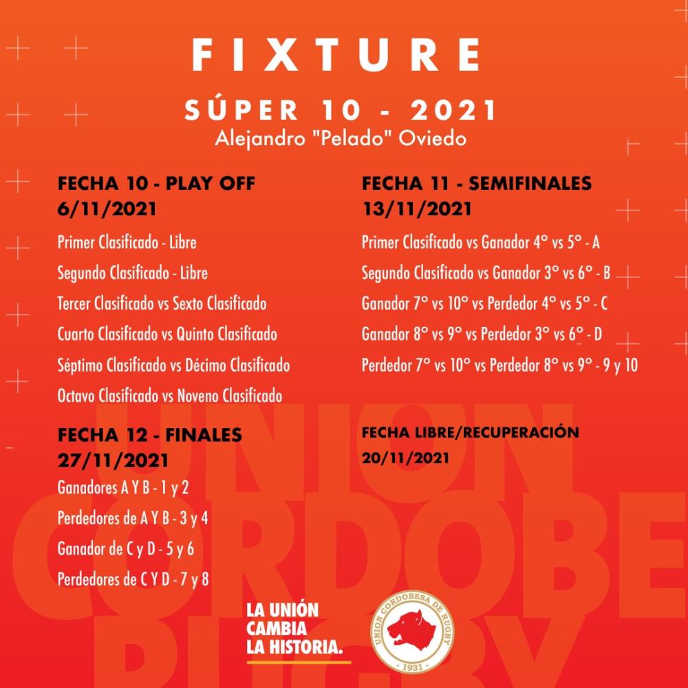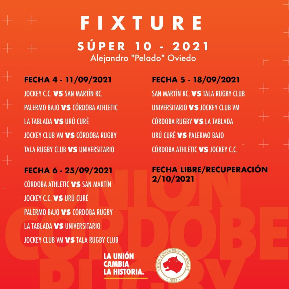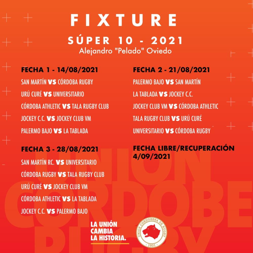 Galería de Imagenes La unión cordobesa publicó los partidos y las fechas de esta nueva competencia. El 14 de agosto comienza el Súper 10 Alejandro "Pelado" Oviedo, el torneo tendrá nueve fechas regulares, una fecha de play off y, por último, semifinales y finales. Por otra parte, tanto la Intermedia como la pre intermedia seguirán el fixture de la primera.Acá te dejamos todos los partidos y sus fechas correspondientes: Fuente: Prensa UCR Galería de Imagenes
