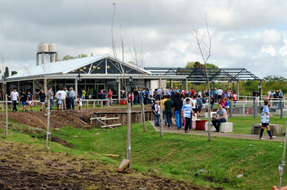 Ese día se bendijo el predio, se descubrió una plaqueta debajo del mástil con la presencia de los Hermanos Quesada, hijos de Don Alfredo, autoridades, socios y simpatizantes del club.