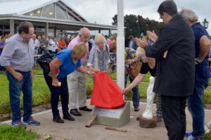 El histórico Bebé Castilla, en ese momento el socio más antiguo del club y maestro de la Escuelita dio el puntapié inicial y la familia Quesada descubrió la placa conmemorativa.