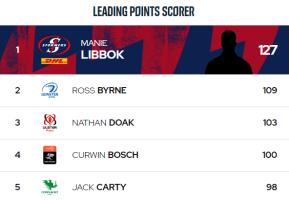 En cuanto a los kicks, dos de tres estadísticas también son lideradas por jugadores sudafricanos, Manie Libbok es el jugador que más penales pateó, con un total de 20 y es el tercero en materia de conversiones (26), en un ránking que lidera Ross Byrne, de Leinster.