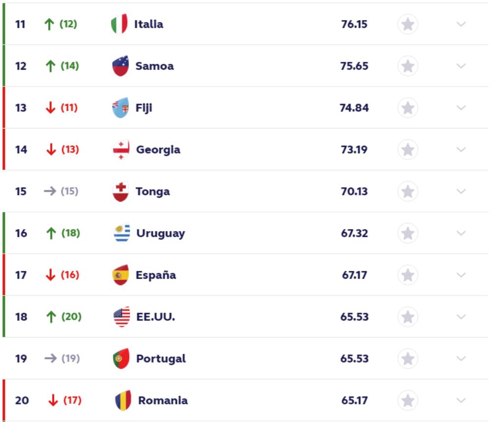 Luego de otro fin de semana con mucho rugby internacional, el ranking de World Rugby sufrió alguna modificaciones en su tabla de posiciones, Uruguay y Gales fueron los dos seleccionados que más lugares avanzaron.